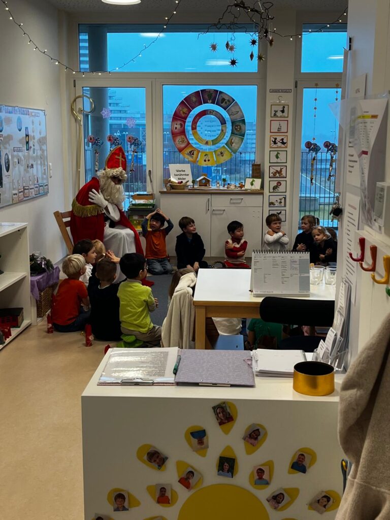 St. Nicholas was warmly welcomed in all four groups. The children had practiced songs with great enthusiasm in the days before and performed them with joy. It was lovely to see how attentive and proud they were to meet St. Nicholas.
