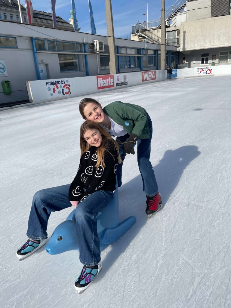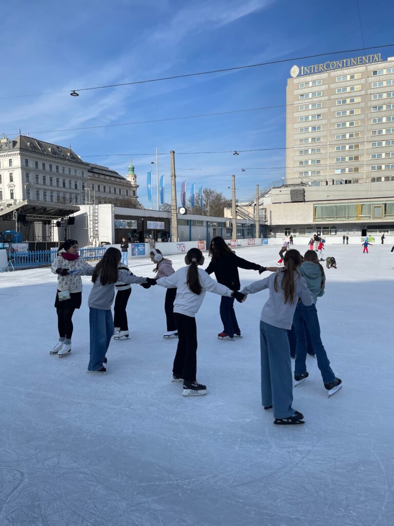 Class 2b spent a lively and happy afternoon at the Vienna Ice Skating Club. All the children took to the ice with great enthusiasm and commitment. After a few cautious laps, the movements became more and more confident and the first races with the “seals” began. They laughed, cheered and raced with great ambition. Some children even tried out little figure skating tricks, showing courage and skill. It was particularly nice to see how everyone supported and motivated each other. The 2b will certainly remember this sporting excursion for a long time to come.