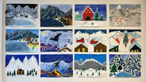 | Landscape painting with water reflections 3B | Portrait drawings 1st classes |