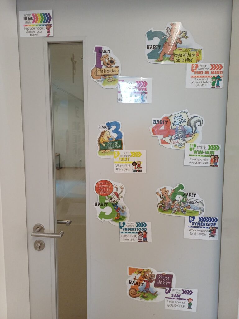 Our 4th graders are already well immersed in the Leader In Me concept. Week by week, each child’s logbook is filled with weekly goals, formative biographies, resolutions, etc. to build character strengths. This continuous work strengthens the children’s self-responsibility and supports them in consciously recognizing and developing their personal strengths.