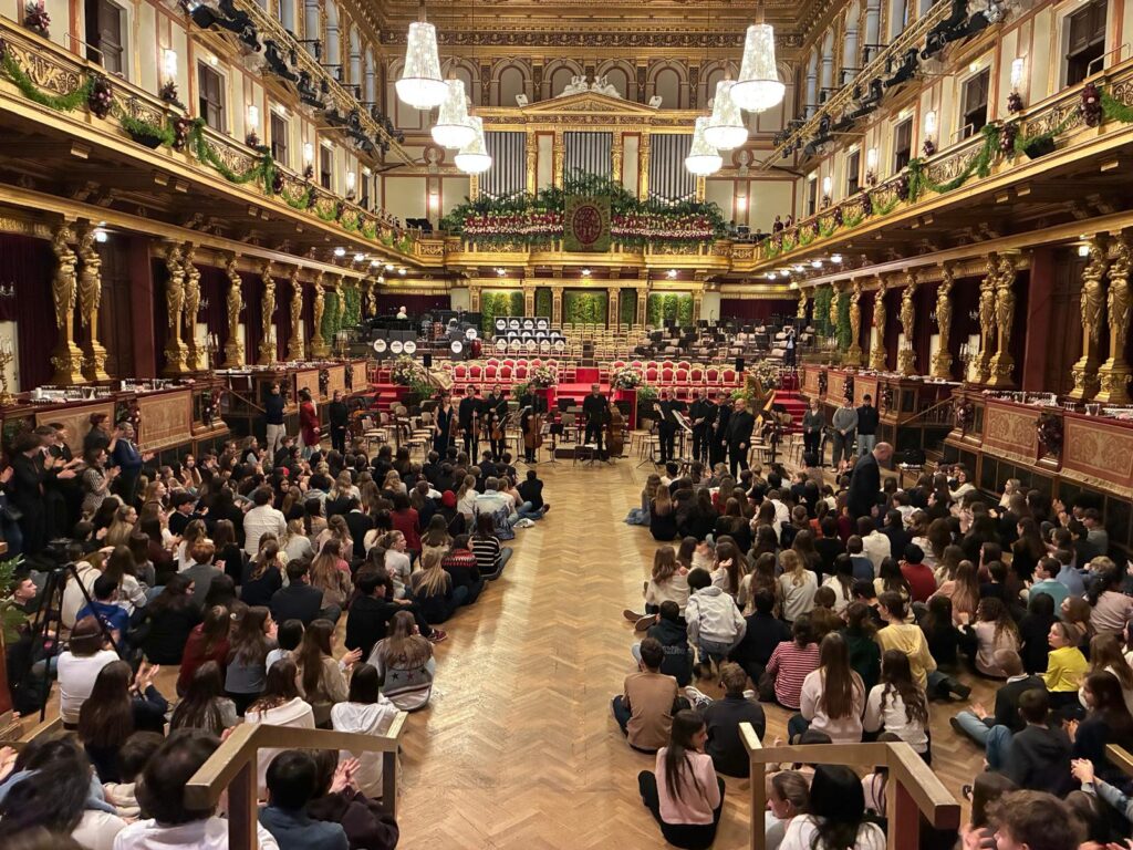On January 22, 2026, class 5A attended the passwort:klassik “Concert in the Ballroom” at the Vienna Musikverein as part of their music lessons. Even before the Philharmonic Ball, the pupils experienced an interactive concert in the magnificently decorated Great Hall – sitting on the freshly polished parquet floor.