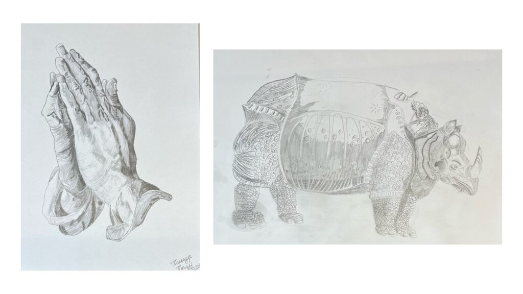 | Dürer’s praying hands by Tymur 4A | Dürer’s rhinoceros from Lianne 3A |