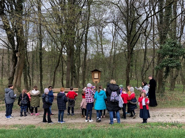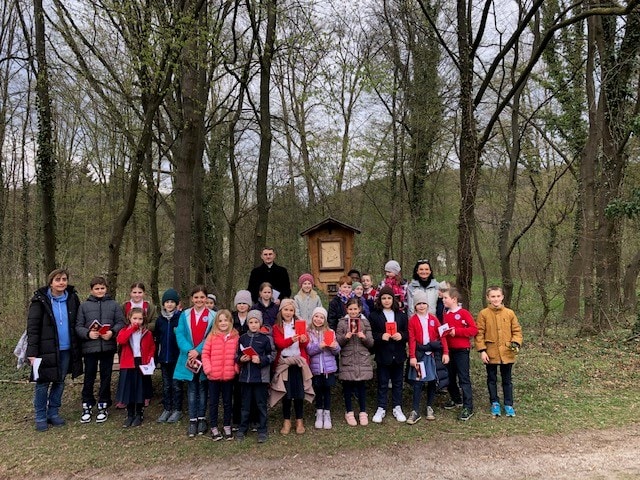 In the last lesson before the Easter holidays, we walked the Stations of the Cross in Seebenstein Nature Park. In the two religious education lessons beforehand, the children created their own Stations of the Cross booklet with the 14 stations. Our school chaplain Dr. Thomas Kenner also accompanied our class on this walk.