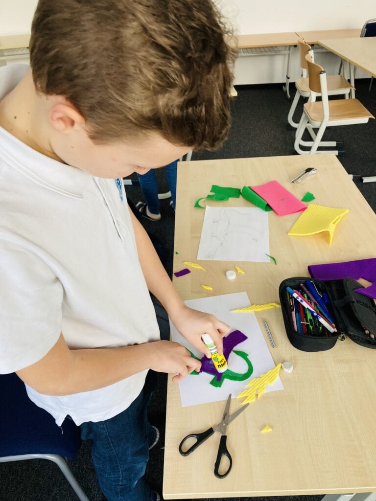 In Creative Design this month, a wide variety of figures and fantasy creatures were designed and created from unusual materials such as fabric, felt and rags. The students gave free rein to their creativity and the colourful results were impressive.