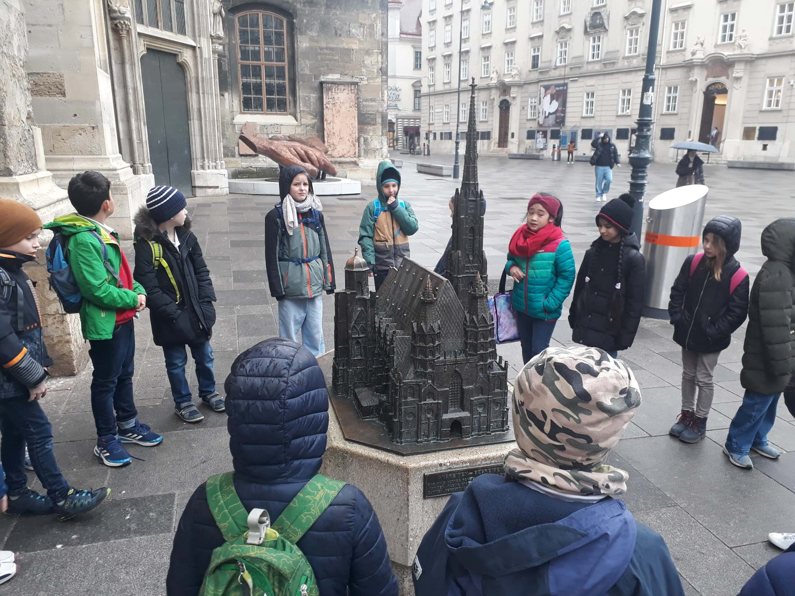 In our science lessons in 3rd grade, we did a scavenger hunt through our school district on the topic of Vienna. The week before last, we also walked along the Ringstraße.