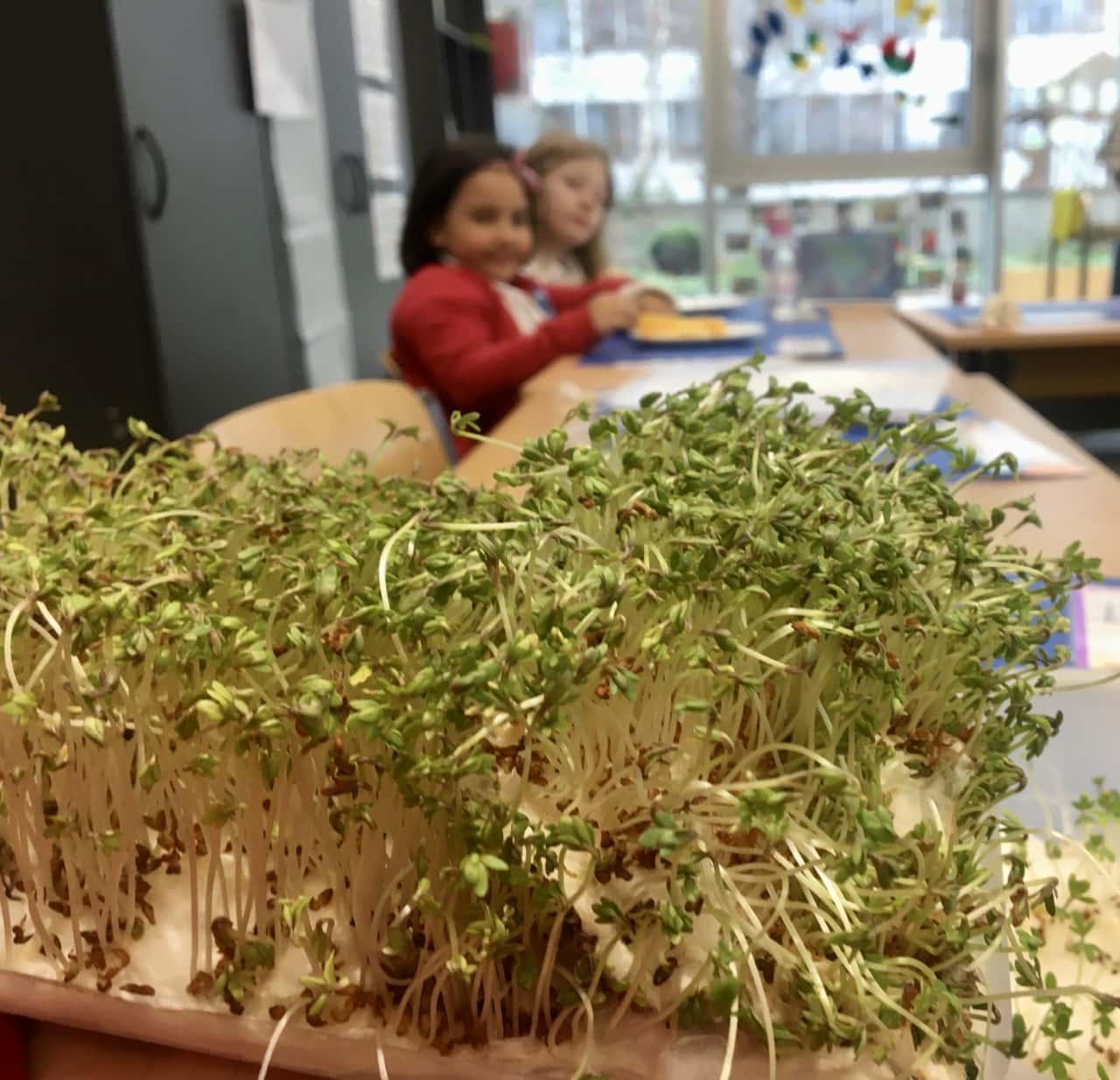 We have our daily active snack break in the school garden whenever possible. The happy children are already enjoying the awakening of nature!