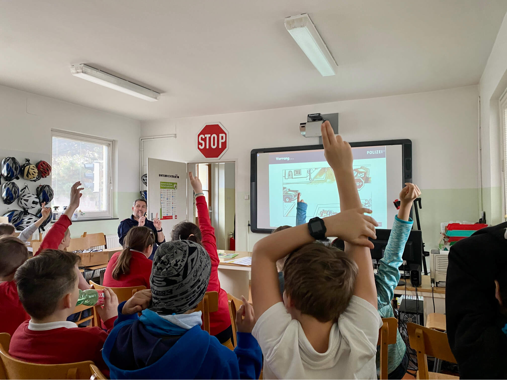 The 4a had their bicycle training: First there was an exciting practice lesson with the policeman. Then the whole 4a cycled happily and highly concentrated through the traffic garden. Thus prepared, we look forward to the bike test without any fear.