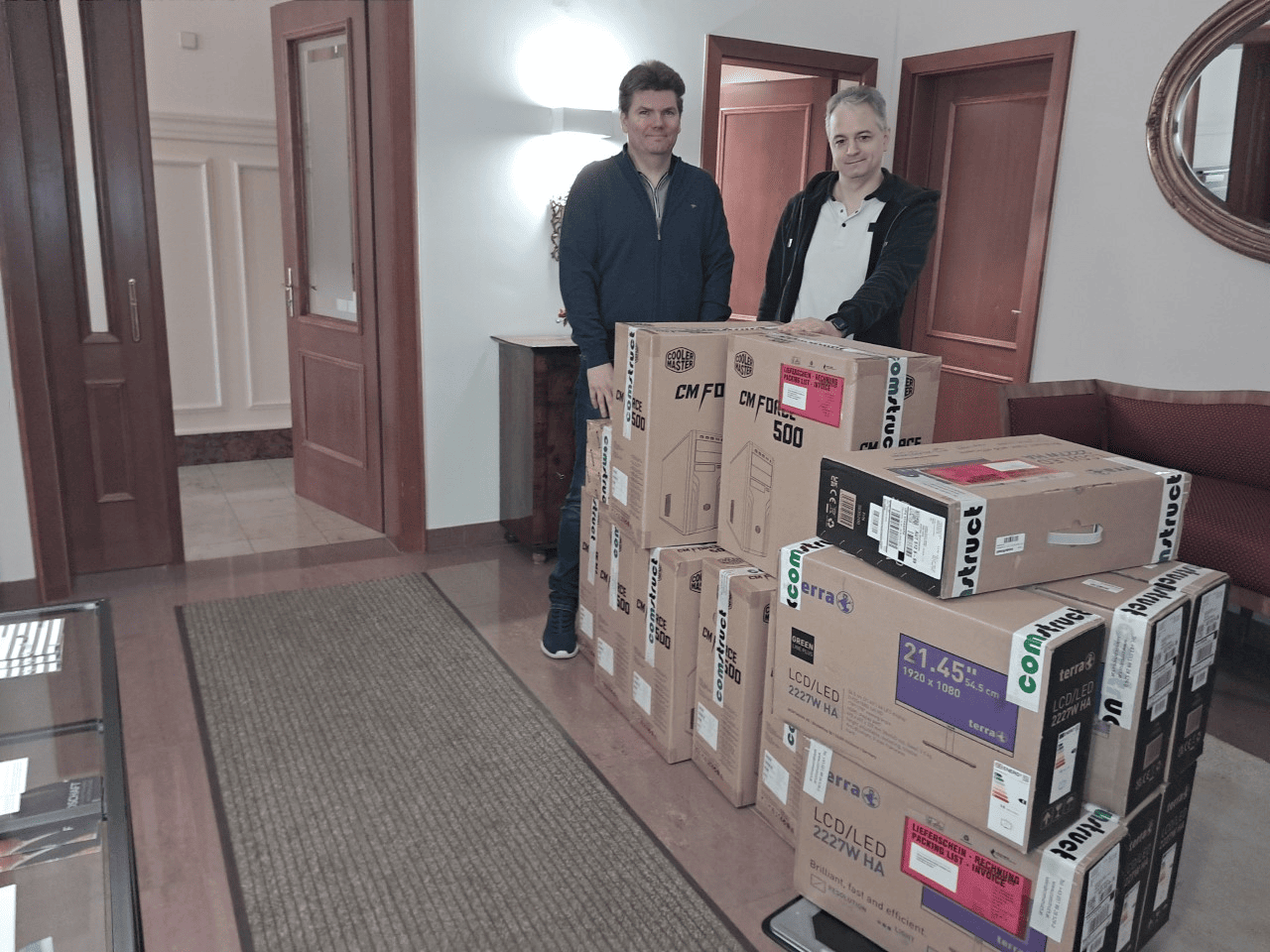 A Stella father has donated 7 stand PCs to us. The PCs will be made available to the primary school classes after the standard installation by Stella IT. Attached is a photo of the handover. Thank you so much!