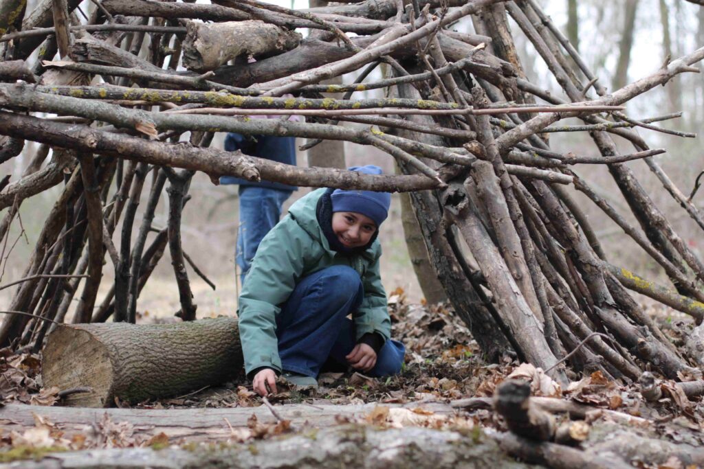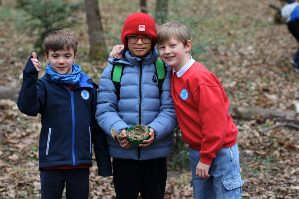 Im Sachunterricht beschäftigten wir uns mit Vögeln und dem Nesterbau. Bei einem Waldbesuch bauten die Kinder eigene kleine Vogelnester und freuten sich besonders darüber, dass ihre Holzbauten vom letzten Waldtag noch erhalten waren. Daran wurde danach fleißig weitergebaut.