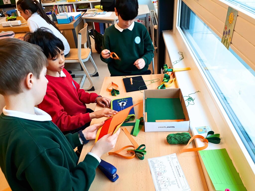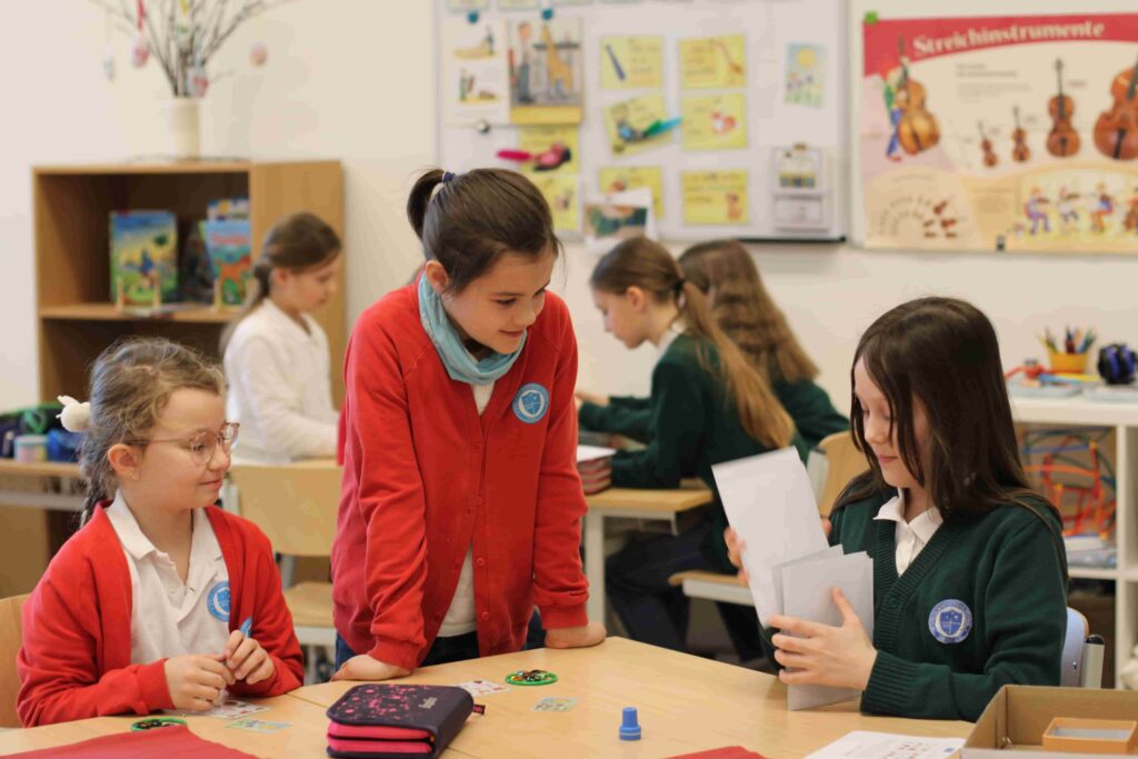 Im März fand für unsere 2. Klassen eine Osterwerkstatt gemeinsam mit der 2. Klasse des Gymnasiums statt. Im Rahmen des Service Learning betreuten die „großen“ Schüler und Schülerinnen verschiedene Stationen. Dabei gab es viele abwechslungsreiche Stationen: Eierlauf, Hasenstriezel backen, ein Easter-Bingo und eine Blitzlesestation mit Osterwörtern. Im Bücherkino konnten die Kinder entspannen, während sie an den Bastelstationen die österliche Fenster- und Türdeko gestalteten. Vielen Dank für die tolle Unterstützung!