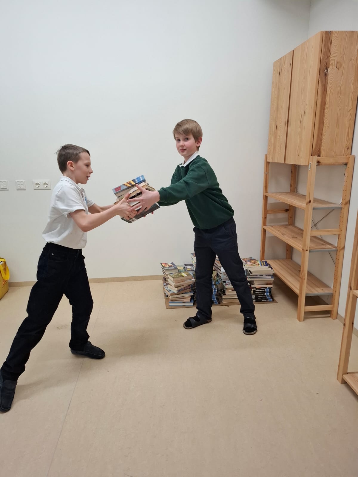 Bereits am 19. März haben die Schülerinnen und Schüler der 1A tatkräftig mitgeholfen und alle Bücher gemeinsam in das gegenüberliegende Lehrmittelzimmer übersiedelt – ein großer Schritt in Richtung Umbau!